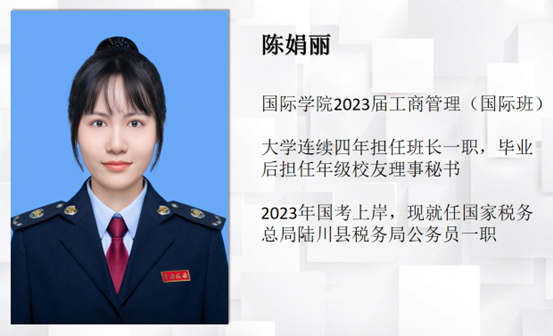 陈娟丽校友在校期间表现优异,连续四年担任班长职务,最终在2023年国家公务员考试中脱颖而出,成功“上岸”。分享会上,她系统梳理了公务员考试的完整流程,包括笔试、面试、体检、政审和公示等环节,并特别提醒同学们:“近年来公考竞争日趋白热化,建议尽早启动备考计划,做好长期作战的准备。”