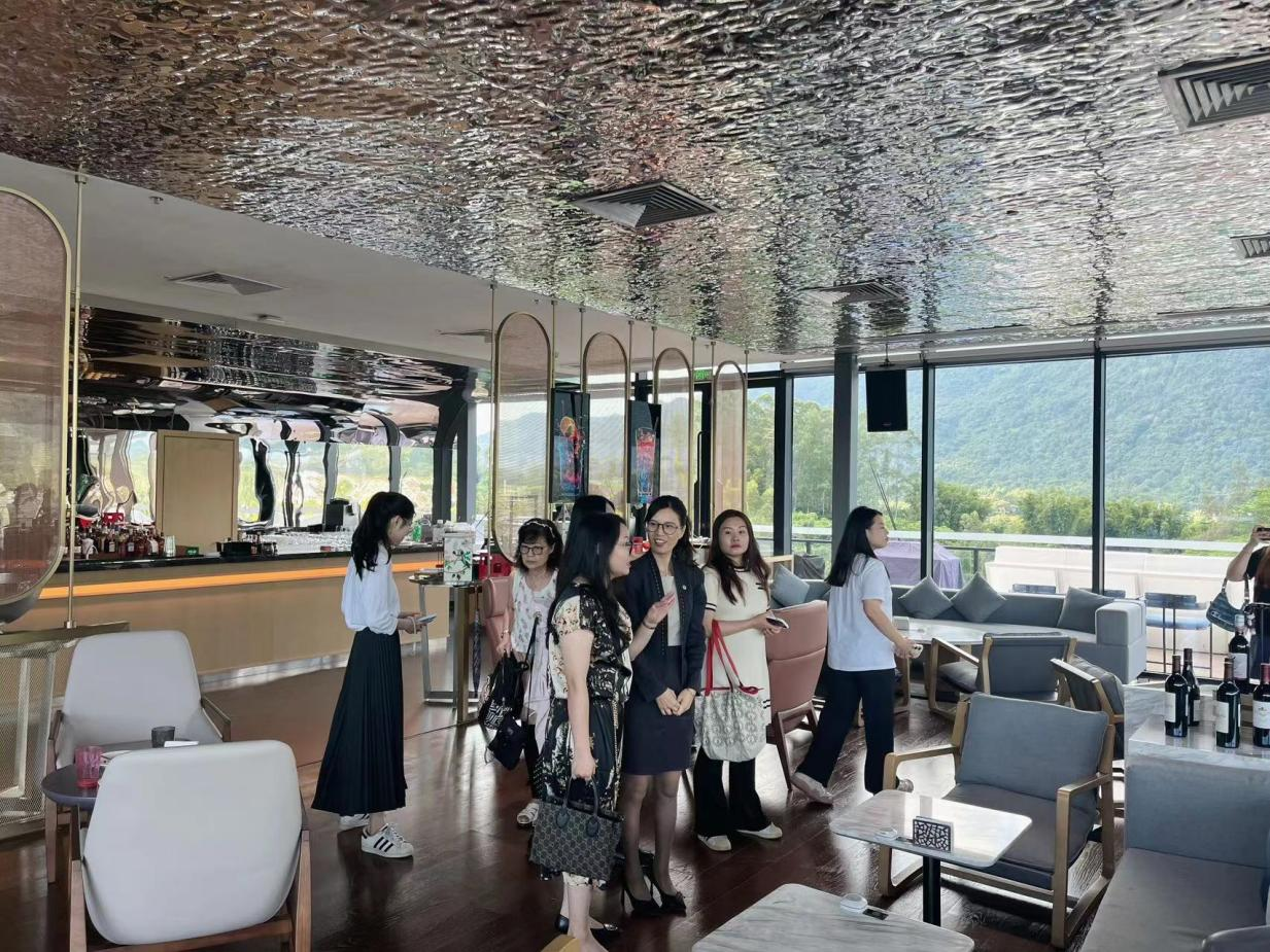 会议上,广州合汇温泉酒店韩本宁总经理对我院一行的到来表示热烈欢迎。他详细介绍了合汇温泉酒店的企业文化、核心价值观和打造广东省标杆酒店品牌的目标。李文蓓院长感谢韩本宁总经理的热情接待,同时介绍了我院的办学理念和人才培养目标,强调了实践教学对应用型人才培养的重要性,希望通过深化校区合作,在校企互惠的基础上收获成果。随后,部门专员进一步介绍了酒店的概况,包括地理位置、设计理念、客房设施、餐饮服务、会议设施等。座谈会气氛融洽,双方针对人才的需求、培养质量、就业岗位拓展等内容进行了深入探讨和交流,达成多项共识。会议结束后,尹莉丽总监带领我院一行人参观酒店。