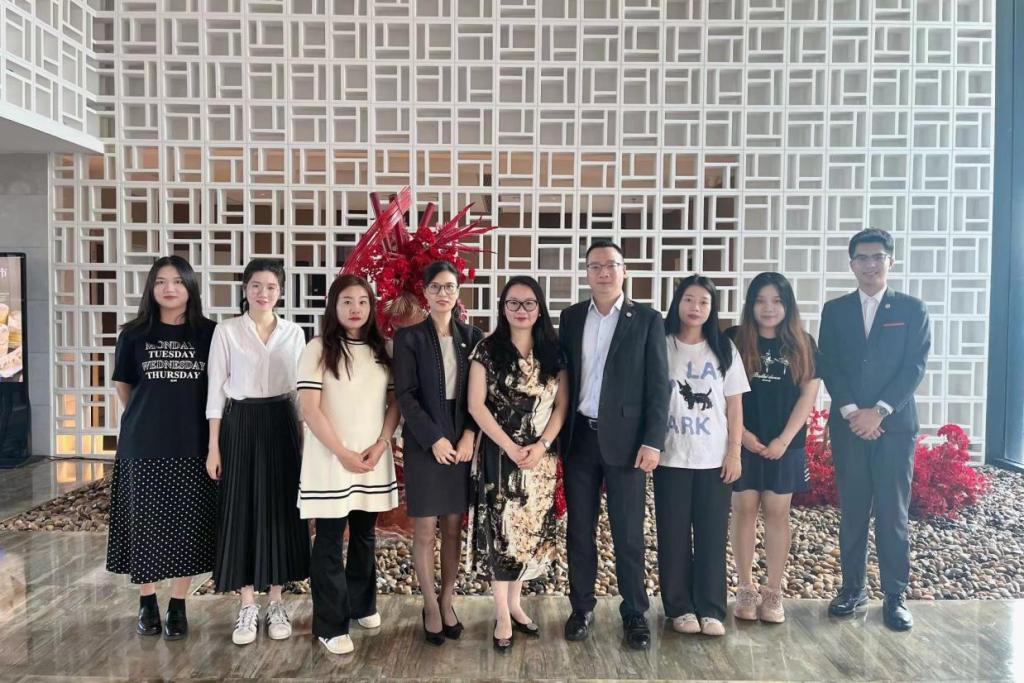 2024年9月19日下午,太阳成集团122ccvip院长李文蓓带领骨干教师陈珍玉、陈子珩、袁萱蕴、欧阳莹、彭云前往广州合汇温泉酒店做校企合作交流,了解企业人才培养需求,拓宽就业渠道,促建实习基地。广州合汇温泉酒店总经理韩本宁、总监尹莉丽及部门专员热情接待了李文蓓院长一行,双方进行了富有成果的交流。