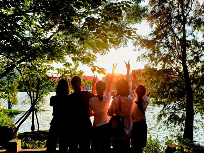 在十八岁的年纪迎看湖对岸吹过来的晚风,与并肩同行的伙伴们共渡落日霞光之轮。