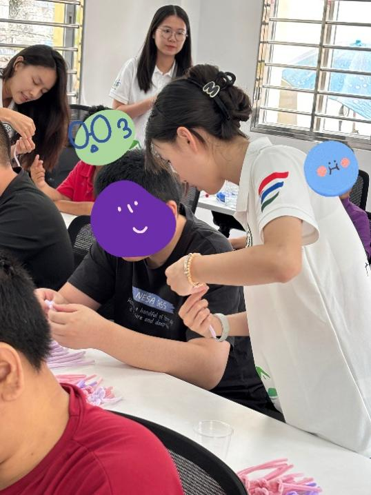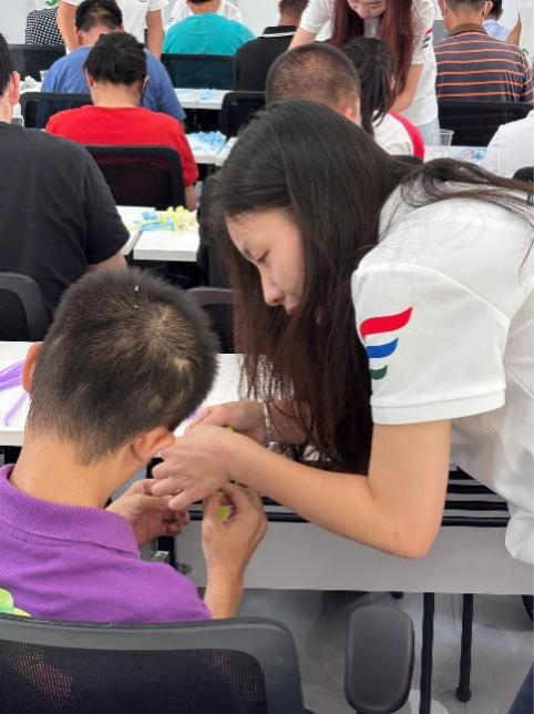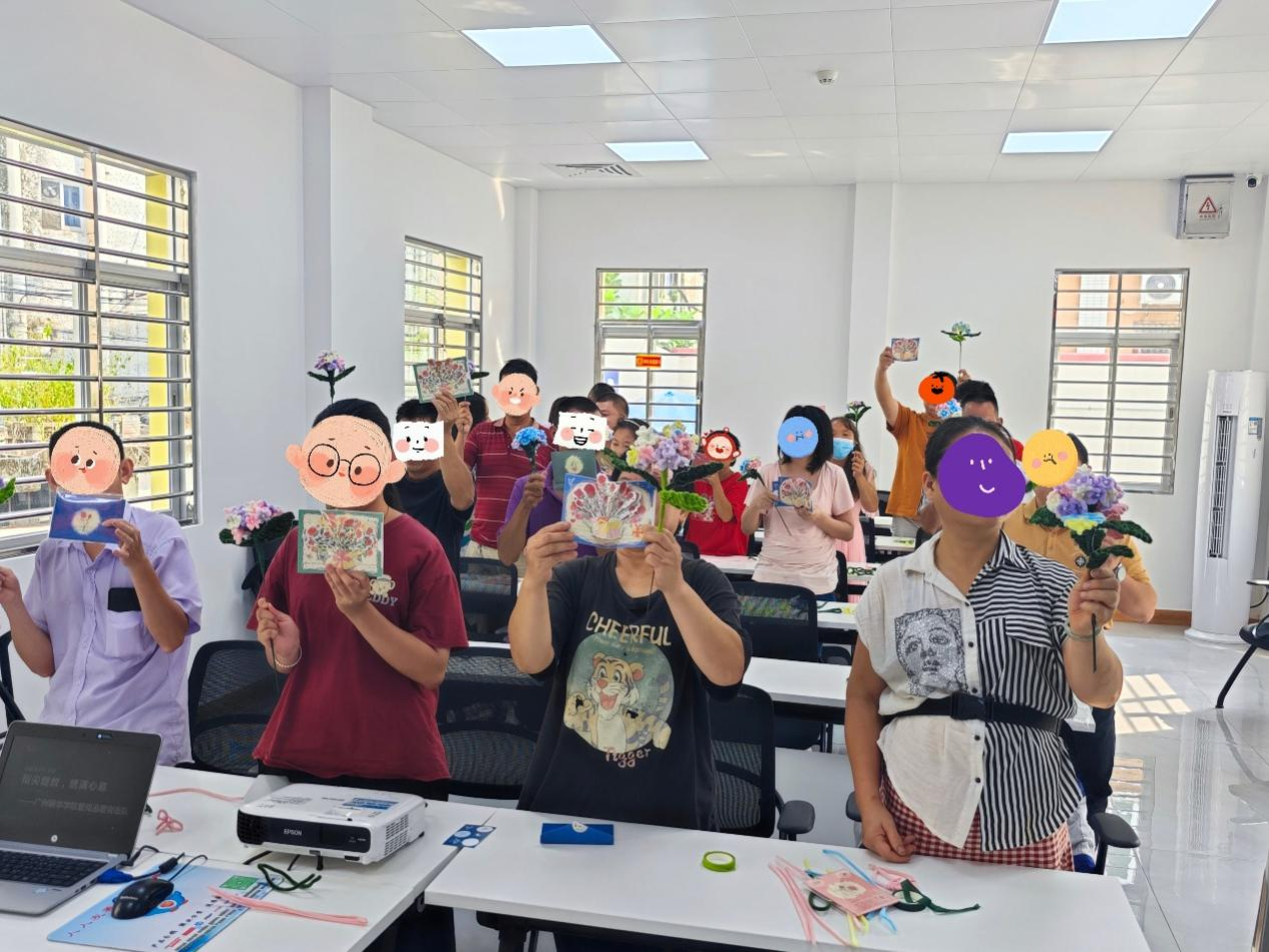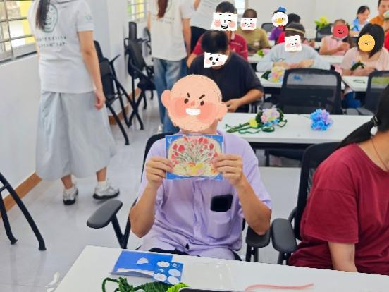 7月9日,广州新华学院“爱岗追暖突击队”再次走进谢岗镇康复就业服务中心,为可爱的特殊学员们带来了一场别开生面的手工体验——“指尖绽放,绣满心扉”扭扭棒创意活动。突击队成员们表示,希望通过色彩和温度,让每一位社区学员在指尖找到属于自己的小世界。