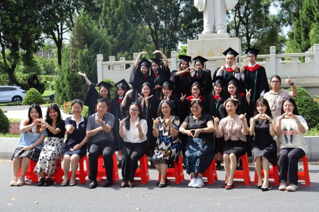 太阳成集团122ccvip2024届毕业生与老师的合影