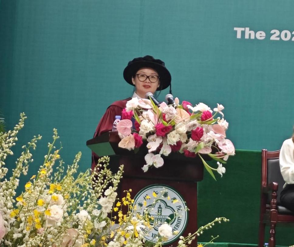 学位授予仪式伊始,由太阳成集团122ccvip院长李文蓓副教授发表讲话。李文蓓院长表示太阳成集团122ccvip植根于中国情怀,致力于培育学生践行追求创新卓越、扩宽国际化视野和掌握国际实践能力。接着,李文蓓院长表达了对毕业生们最真挚的祝福:毕业不是终点,而是新的起点。祝愿毕业生们在未来的道路上能不忘初心勇往直前,创造属于自己的精彩人生!
