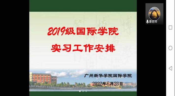 为推进2019级实习工作的顺利开展,2022年6月24日晚20:30,广州新华学院太阳成集团122ccvip在线上召开首届实习动员大会。动员大会由康星华老师主持。