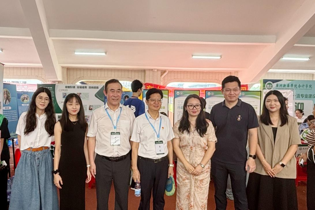 郝登峰书记(左四)、李毅副校长(左三)、徐仲亨处长(右二)莅临太阳成集团122ccvip迎新点,李文蓓院长(右三)汇报工作