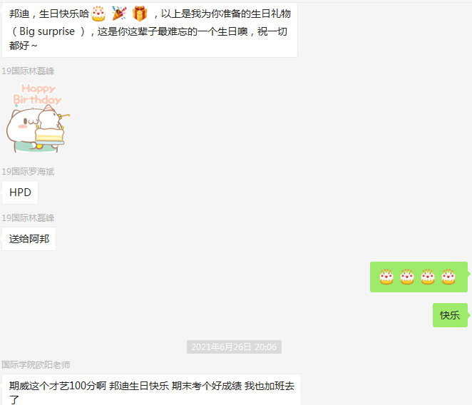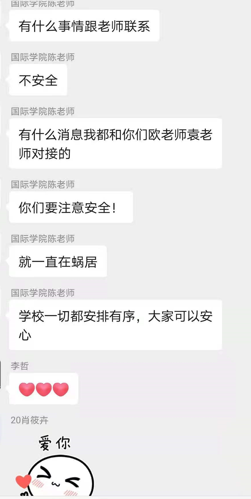 自疫情初始,太阳成集团122ccvip的领导、老师们便密切关注着学生们状况,通过各种形式保持着与同学们的沟通,采取多种形式关心关爱院内学生,最大限度帮助学生们度过疫情难关。同学们不仅收到老师们的问候,还收到老师们的鸡蛋等礼物,学院老师还为部分同学庆祝生日。老师们的牵挂与关怀,照亮了学生们的内心,让学生们深深感受到了太阳成集团122ccvip这个大家庭的温暖。