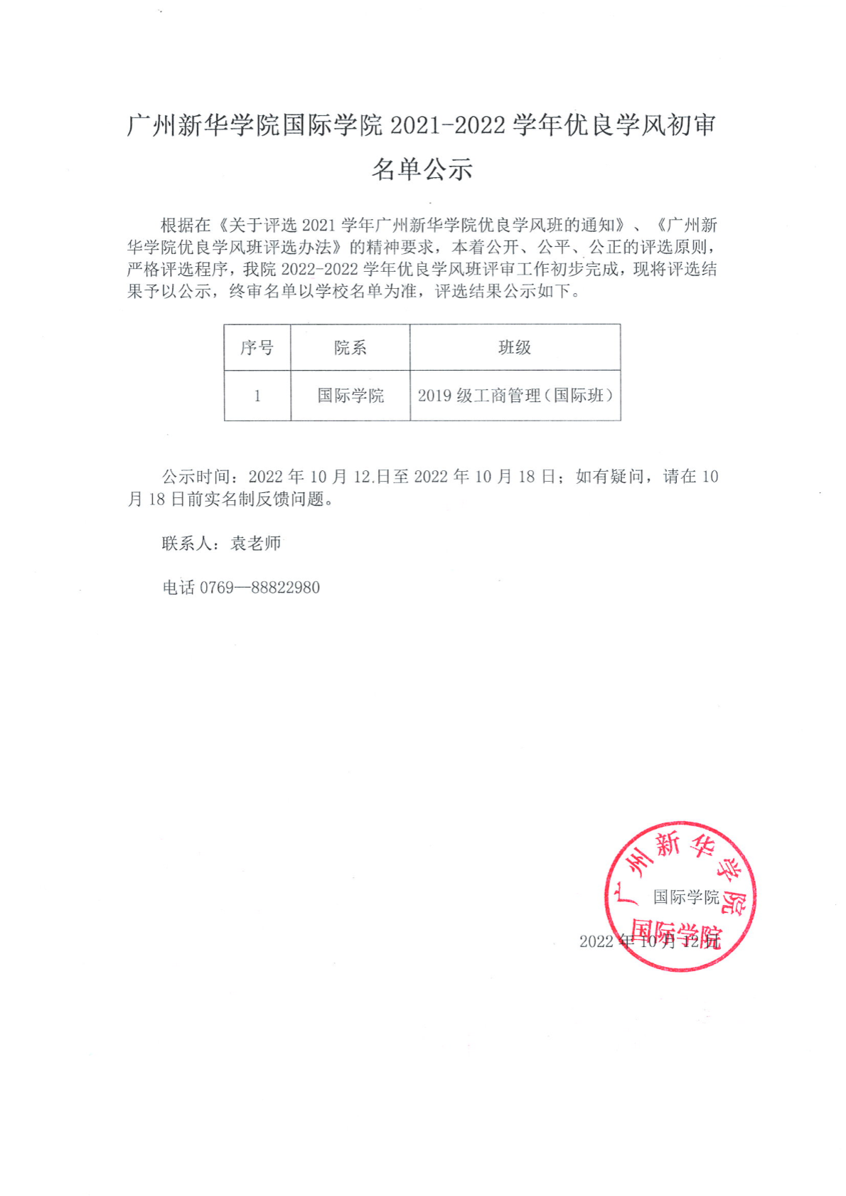 广州新华学院太阳成集团122ccvip2021-2022学年优良学风班公示