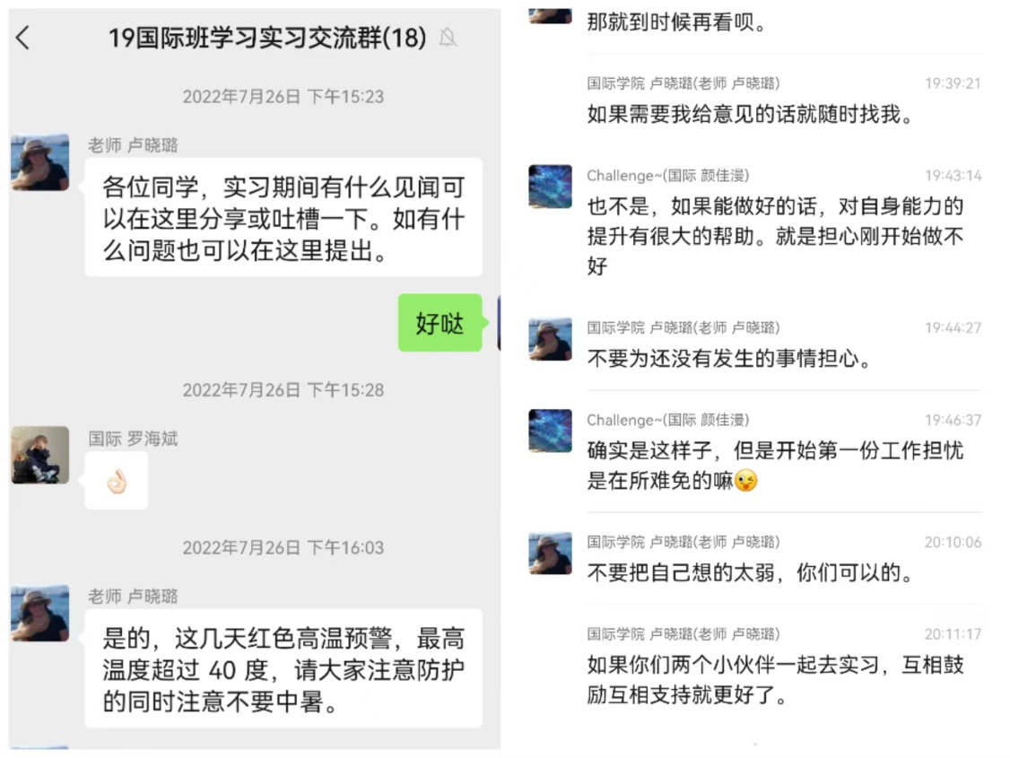 (指导教师卢晓璐老师在实习期间关心学生情况)